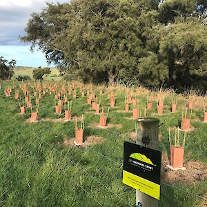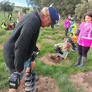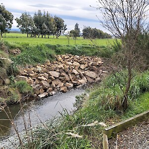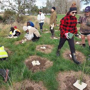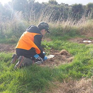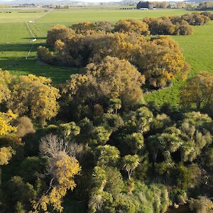 Riparian kowhai treeland restoration, including threatened plant species establishment, driven by the local community and Limehills School. Picnic area and track.