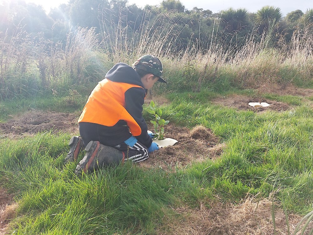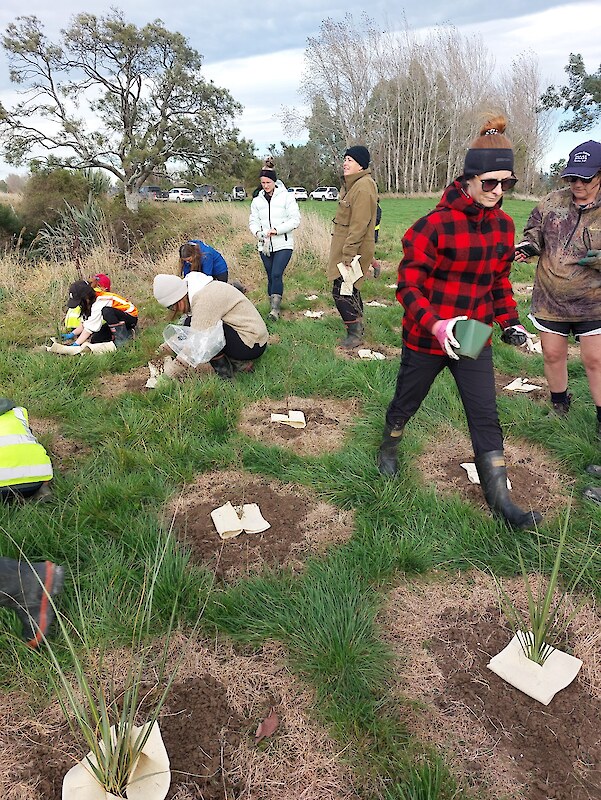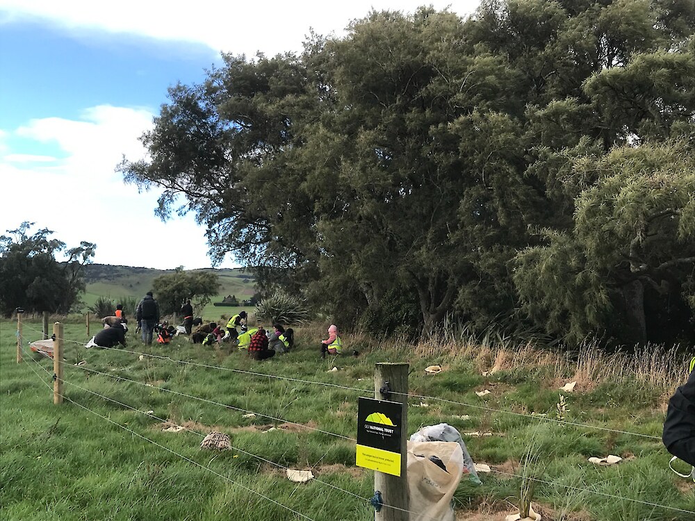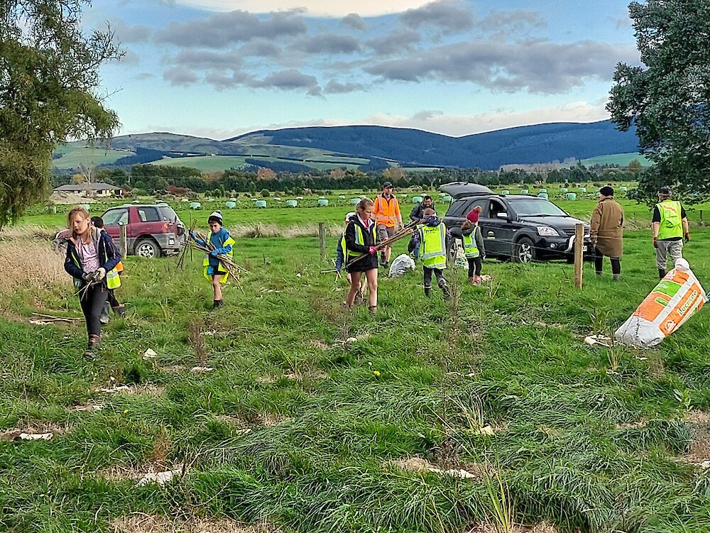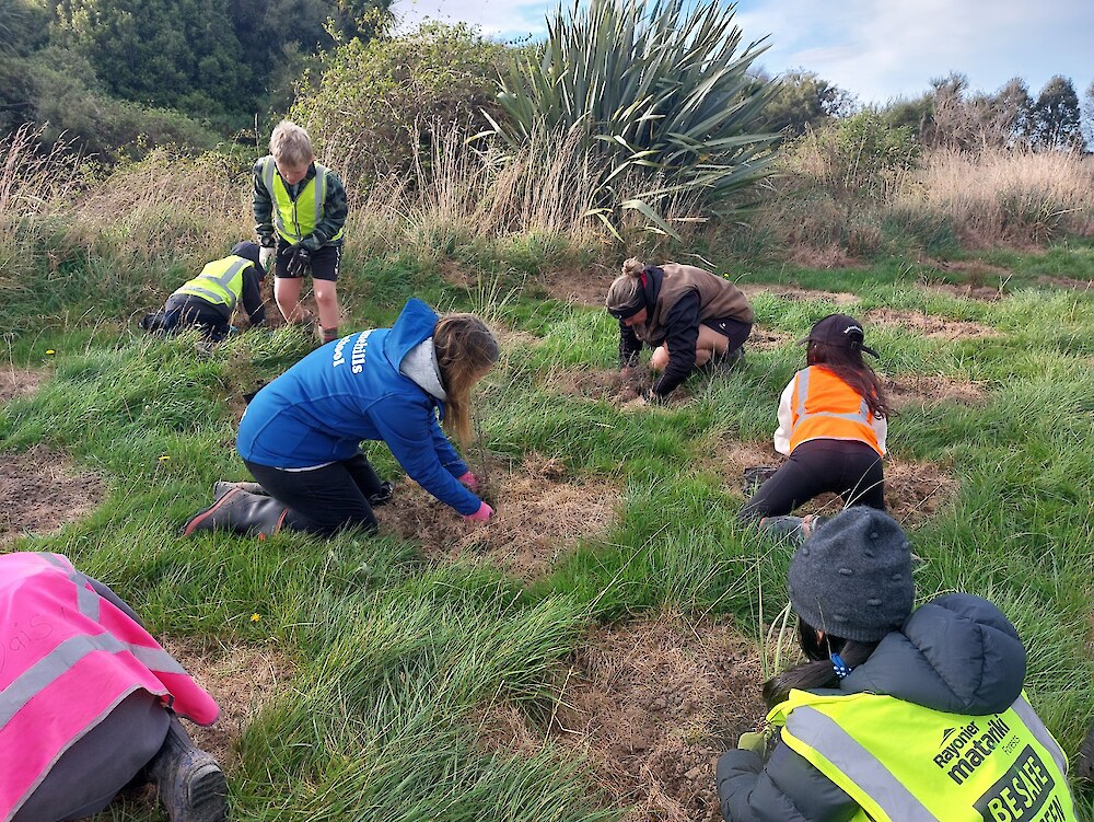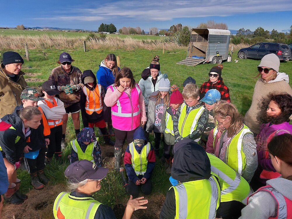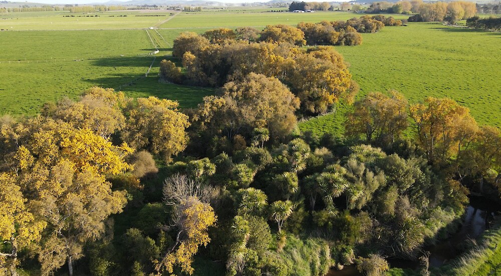 Riparian kowhai treeland restoration, including threatened plant species establishment, driven by the local community and Limehills School. Picnic area and track.